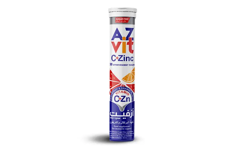 Each of Azvit C + Zinc effervescent tablets contains 500 mg Ascorbic acid (Vitamin C) + 15 mg Zinc