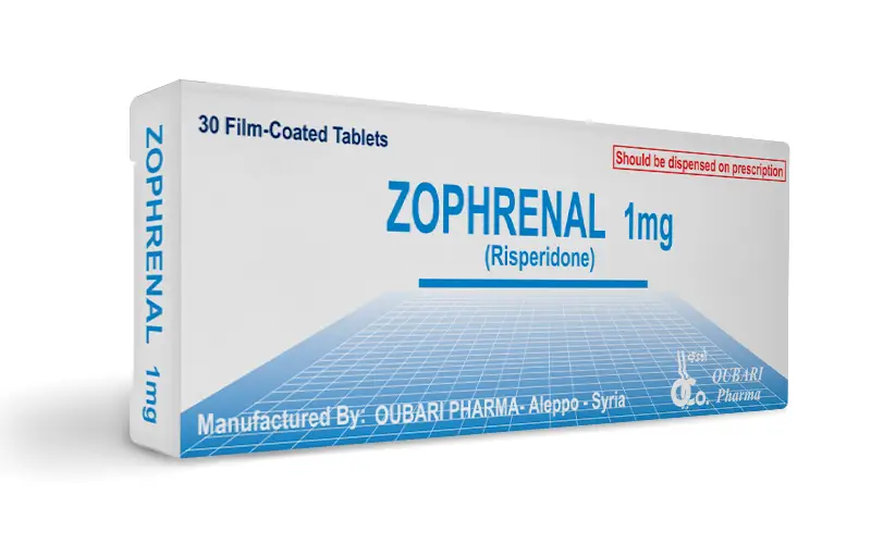 كل مضغوطة من زوفرينال 1 ملغ، 4 ملغ تحوي على ريسبيريدون 1 ملغ، 4 ملغ.