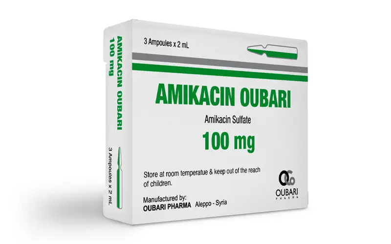 أميكاسين اوبري 100 ملغ، وهو صاد حيوي ينتمي إلى زمرة الأمينوغليكوزيدات، ويعتبر خطاً علاجياً أولياً في علاج العدوى الجرثومية الخطيرة الناتجة عن الجراثيم سالبة الغرام، خاصة السلالات المقاومة لمضادات الخمج الأخرى، وبعض الجراثيم إيجابية الغرام.