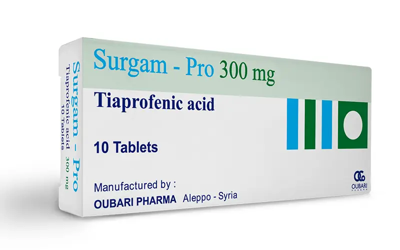 كل مضغوطة من سرجام - برو 300 ملغ تحوي 300 ملغ حمض تيابروفينيك.